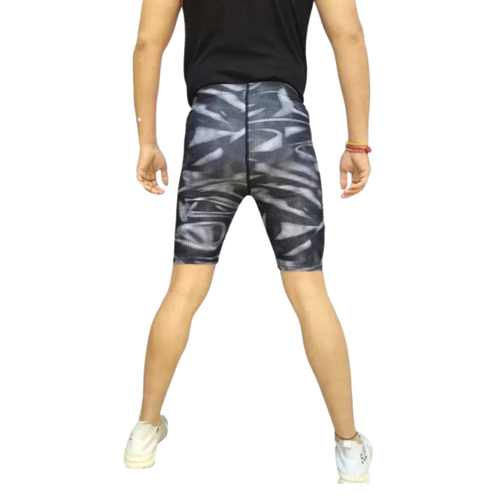 PLAYWAY Printed Grey Skinny Fit Sports Shorts for Men